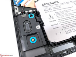 Il coperchio inferiore è relativamente facile da rimuovere perché Samsung ha nascosto le quattro viti Phillips sotto piedini di gomma che sono inseriti anziché incollati. All'interno del portatile è possibile accedere alle ventole, al modulo Wi-Fi e ai due slot SSD (sotto un'ulteriore copertura). La RAM integrata (LPDDR4x-4266) è saldata e non può essere espansa.