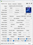 Intel Arc Graphics 130V, Core: 1850 MHz, RAM: 2133 MHz, 32.0.101.6647