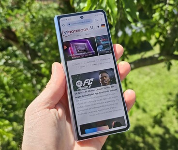 Per quanto riguarda la luminosità, l'alto pannello frontale da 6,2 pollici, con una frequenza di aggiornamento da 48 a 120 Hz, non è riuscito a raggiungere i valori dello schermo principale. Con 957 cd/m², abbiamo misurato una luminanza massima quasi identica a quella del Fold4 Fold4.