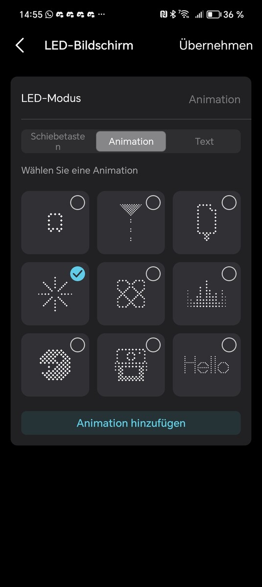 Ci sono tre pulsanti sulla parte anteriore del dispositivo. Quello a sinistra attiva il WPS, quello al centro disattiva o attiva il Wi-Fi e il pulsante a destra accende o spegne il display LED a punti. Il display a LED è una caratteristica speciale che può essere configurata in modo molto esteso tramite l'applicazione Tether di TP-Link. È possibile visualizzare immagini, animazioni, l'ora, il meteo o i propri testi. In modalità notturna, la luminosità può essere regolata verso il basso; se non desidera utilizzare questa funzione, può semplicemente spegnerla.