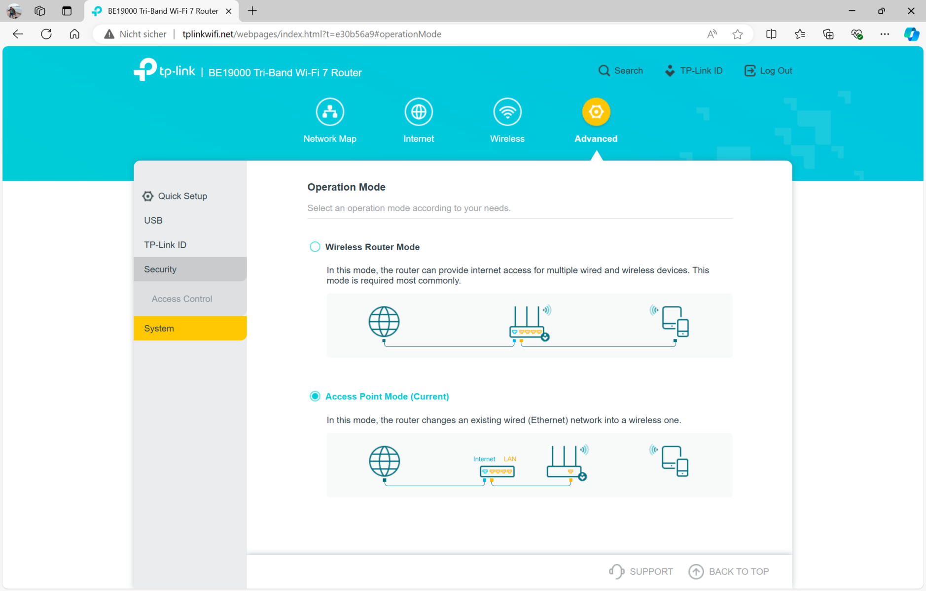In generale, le caratteristiche di TP-Link Archer BE800 sono impressionanti. Oltre alla condivisione dei media (Samba o FTP), gli utenti possono configurare le funzioni VPN direttamente in modalità router ed è possibile attivare le proprie reti IoT o guest. È anche possibile aggiungere ulteriori funzioni di protezione tramite il TP-Link ID, tra cui un filtro dei contenuti esteso o una protezione contro gli attacchi DDoS, opzioni per i genitori e statistiche di utilizzo aggiuntive. EasyMesh è disponibile per i sistemi mesh. Può anche utilizzare l'Archer BE800 esclusivamente come punto di accesso, ma dovrà rinunciare ad alcune funzioni.