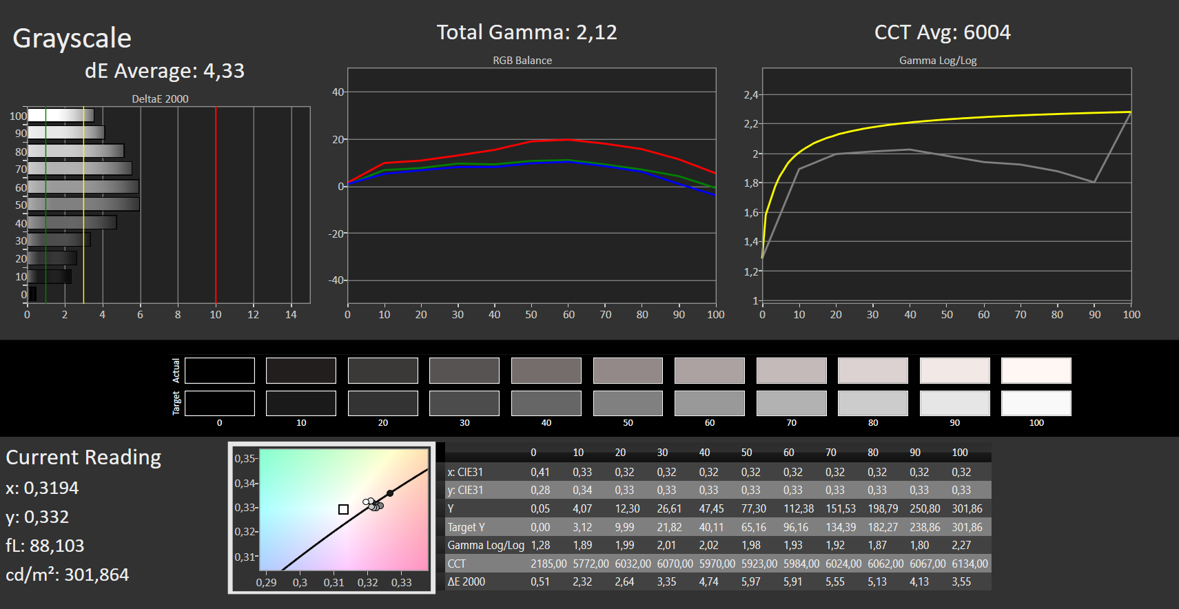 ΔE Greyscale Calman: 4.33 | ∀{0.09-98 Ø5}