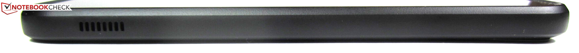 Samsung ha installato un altoparlante su entrambi i lati corti. Questi offrono una qualità audio decente anche se i toni bassi sono molto deboli e gli alti sono chiaramente sovrarappresentati. Il risultato è un suono abbastanza debole, sufficiente per un ascolto occasionale in sottofondo.
