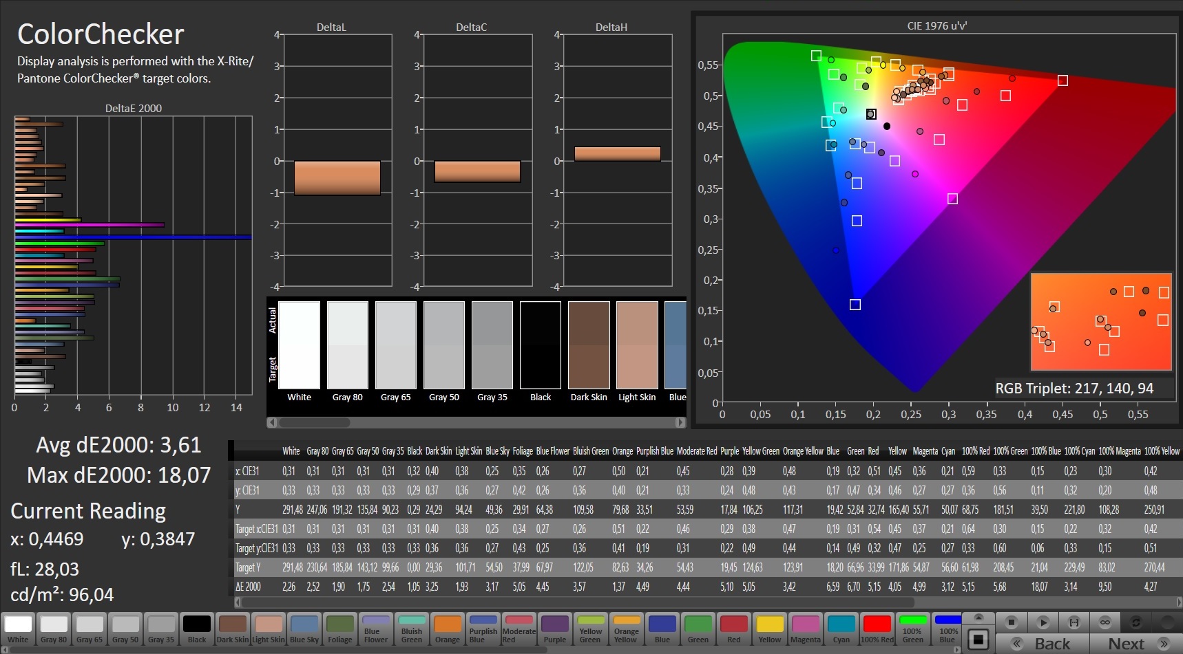 ΔE ColorChecker Calman: 3.61 | ∀{0.5-29.43 Ø4.78}