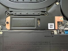 Il coperchio inferiore è fissato con viti Torx (T5) e può essere rimosso facilmente. All'interno, invece, le opzioni di manutenzione si limitano alla pulizia delle ventole e alla sostituzione dell'SSD M.2-2280 che si trova sotto un'ulteriore copertura. La batteria è avvitata e può essere sostituita se necessario.