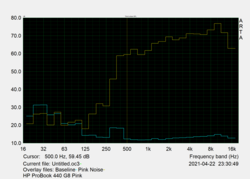 Con un livello massimo di rumore di 36,2 dB(A), la ventola del ProBook440 G8 si nota, ma non in modo fastidioso. Il fruscio uniforme è prodotto solo sotto carico, e nel funzionamento in ufficio, il portatile HP rimane silenzioso. Non abbiamo notato altri rumori provenire dalla nostra unità di test.
