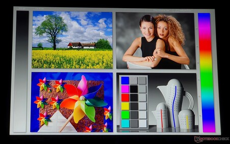A differenza del Predator Helios 16, l'opzione QHD non copre lo spazio colore DCI-P3, ma è invece limitata al 100% sRGB come la variante FHD+ che abbiamo testato. 373 cd/m² sono sufficientemente luminosi - nel nostro campo di confronto, solo ilLegion Pro 5 brilla di più con 516 cd/m², e in più offre anche una risoluzione più elevata a un prezzo simile (come i modelliLOQ 16 e il XMG Apex 15).