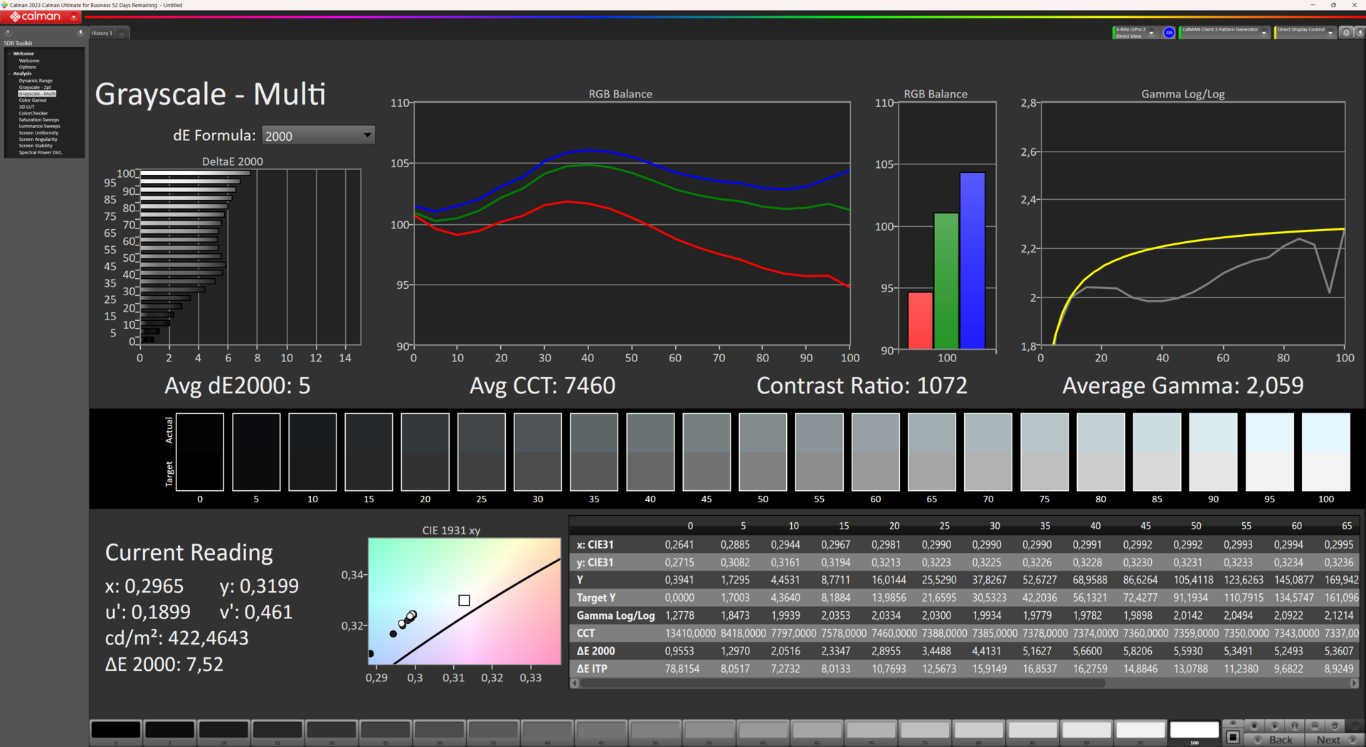 ΔE Greyscale Calman: 7.52 | ∀{0.09-98 Ø5}