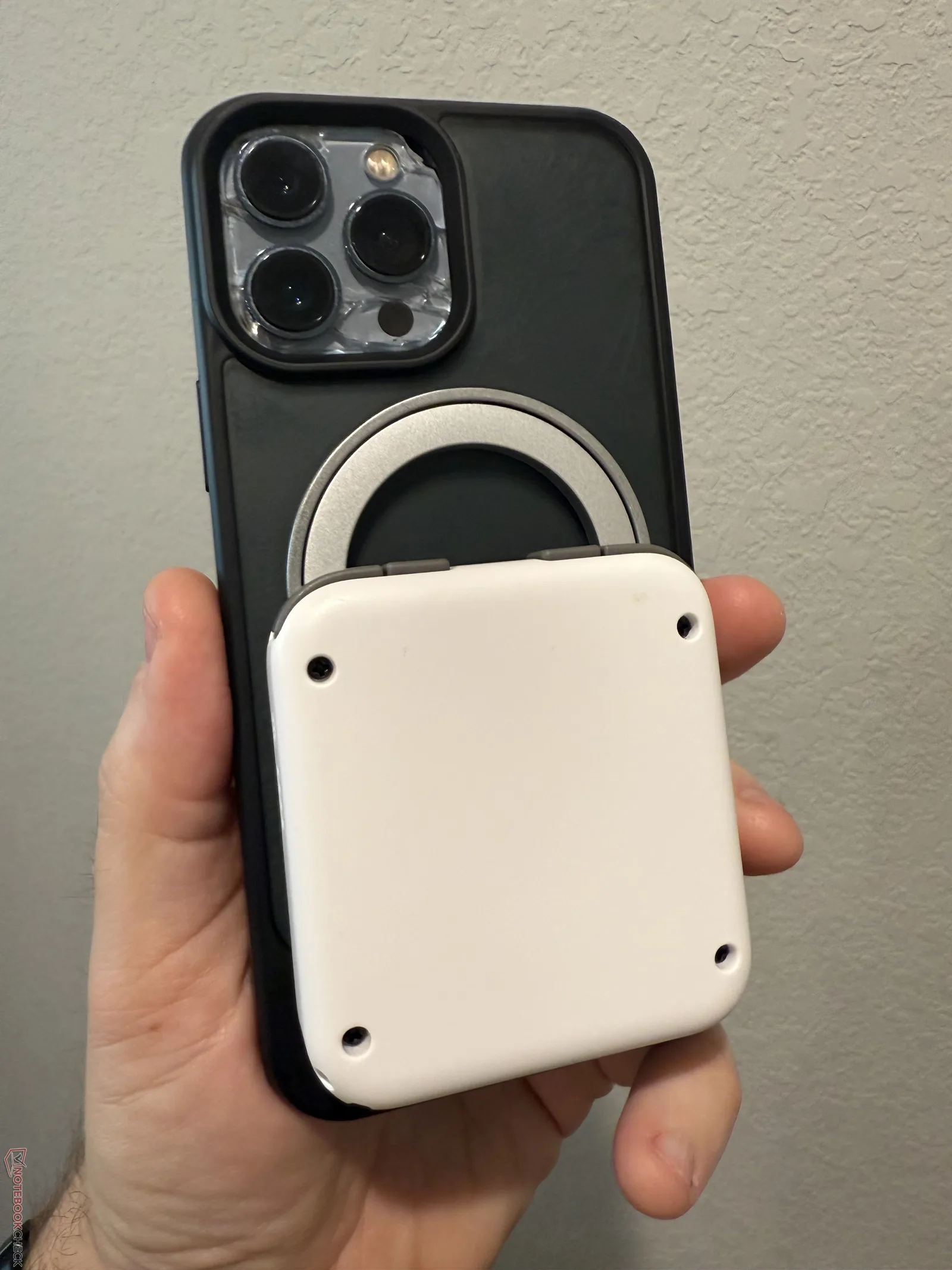 Il magnete è un pezzo separato dal controller, che si attacca al magnete e si allinea tramite un piccolo perno nella parte superiore. Tuttavia, questo perno non è così stabile come si spera, soprattutto con i telefoni più grandi o più pesanti. Nel mio test, un iPhone 13 si è sentito abbastanza fissato, ma un iPhone 13 Pro Max e un iPhone 16 Pro Max si sono sentiti entrambi traballanti e non fissati con sicurezza. Detto questo, i telefoni sono rimasti in posizione a meno che non siano stati scossi intenzionalmente, nel qual caso l'anello magnetico si è staccato dal controller.