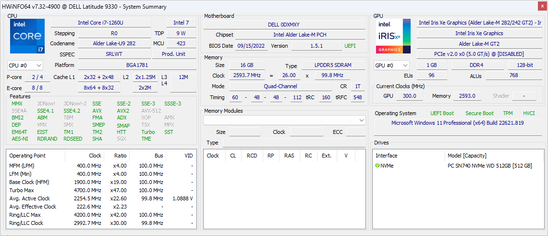 | 89 % v7 (old) | 11/2022 | Dell Latitude 9330 i7-1260U, Iris Xe G7 96EUs | 1.2 kg | 14.1 mm | 13.30" | 2560x1600 | |