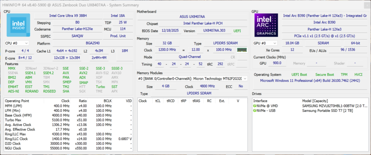 Il secondo punto di forza è naturalmente il nuovo processore mobile Panther Lake di Intel, che non delude. Offre le prestazioni multi-core dei più veloci processori Arrow Lake, ma è significativamente meno energivoro. Si tratta quindi di una combinazione di successo delle due serie precedenti, Arrow Lake e Lunar Lake, che hanno coesistito pur soddisfacendo categorie di utenti molto diverse. Con il nuovo adattatore grafico, c'è un enorme salto di prestazioni di circa il 70%, che è considerevole. Tenga presente che la veloce iGPU B390 è limitata a pochi chip Panther Lake selezionati. Con lo ZenBook Duo, ciò significa che deve scegliere la SKU superiore al prezzo di 2.599 euro, poiché quella di base a 2.299 euro ha una iGPU significativamente più debole.