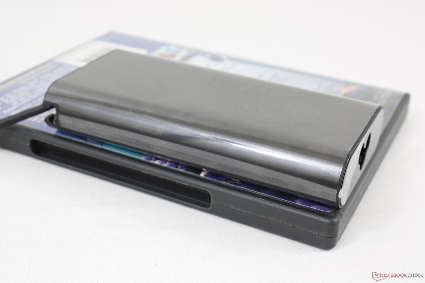 Siamo in grado di registrare un consumo massimo di 96,3 W dal piccolo (medio ~13 x 6,5 x 2,3 cm) adattatore da 90 W, che è molto più alto del solito per un portatile alimentato da una CPU Core serie U. Tuttavia questo scende rapidamente nel tempo a causa dei limiti termici, come mostrato dai nostri grafici qui sotto.
