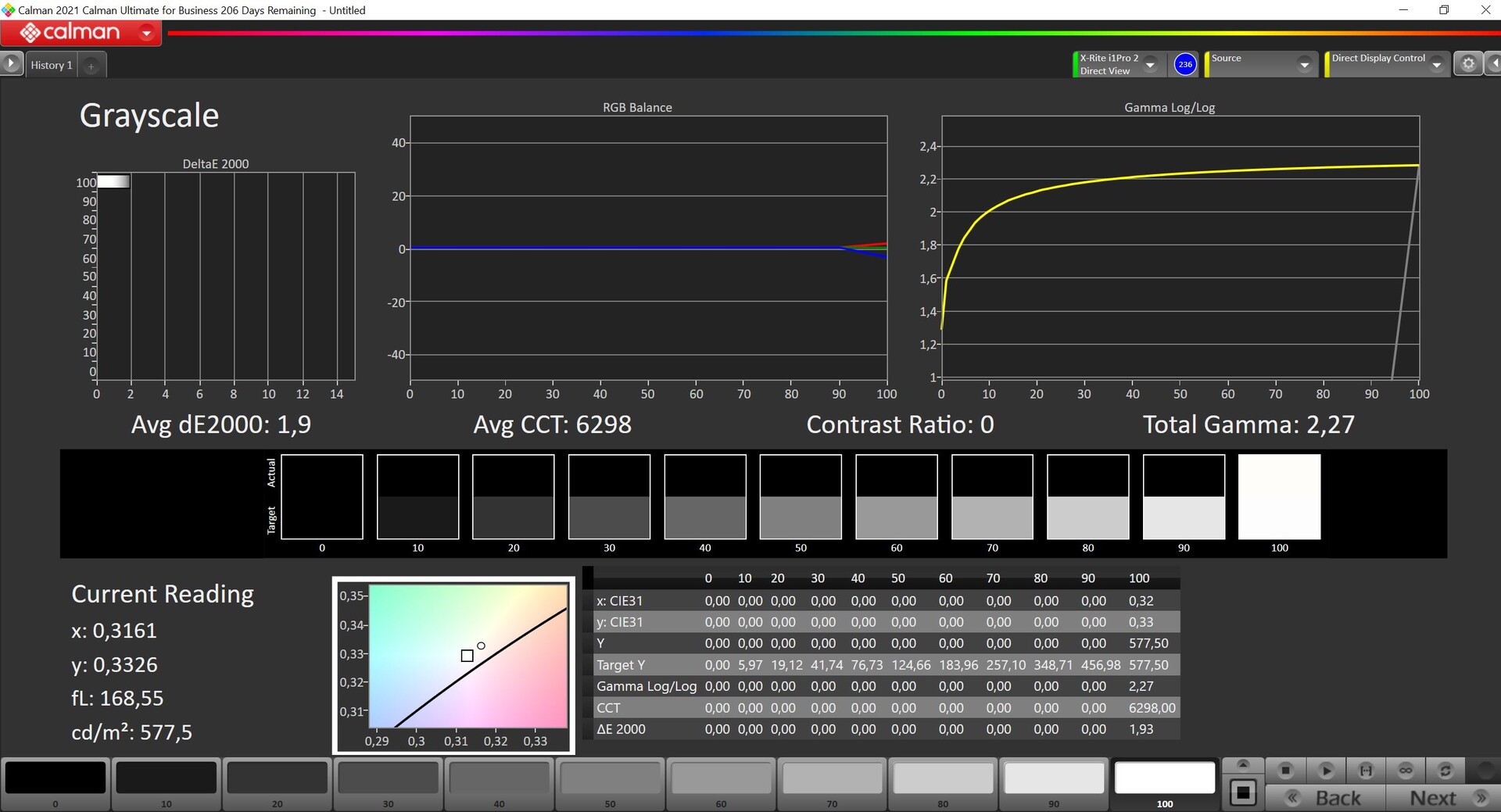 ΔE Greyscale Calman: 1.9 | ∀{0.09-98 Ø5}