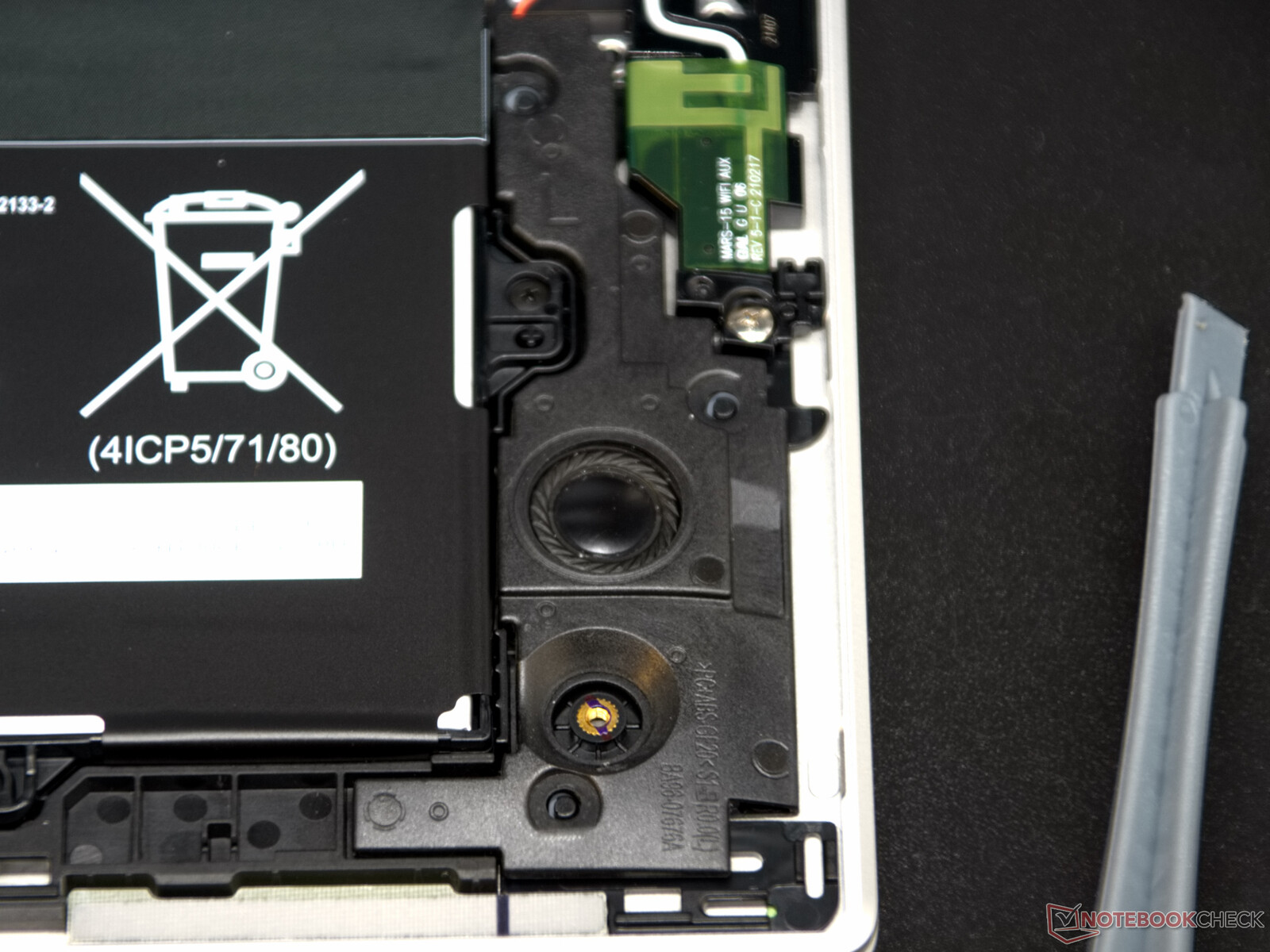 Quattro piedini di gomma nascondono le viti PH00, che a loro volta fissano la piastra di base. Una volta che queste viti sono state rimosse, il processo di rimozione effettiva della base può iniziare. Le fessure di transizione sono strette e le clip di plastica intorno al perimetro hanno una presa tenace, quindi sono necessari una forte ventosa e un attrezzo per fare leva - oltre a molta pazienza, naturalmente. Dato il maggiore spazio interno della versione da 15 pollici, Samsung è riuscita a ospitare un secondo slot M.2 per un SSD aggiuntivo. Il più piccolo convertibile da 13 pollici non dispone di tale slot di espansione. Né la RAM né il modulo WiFi sono sostituibili dall'utente, comunque