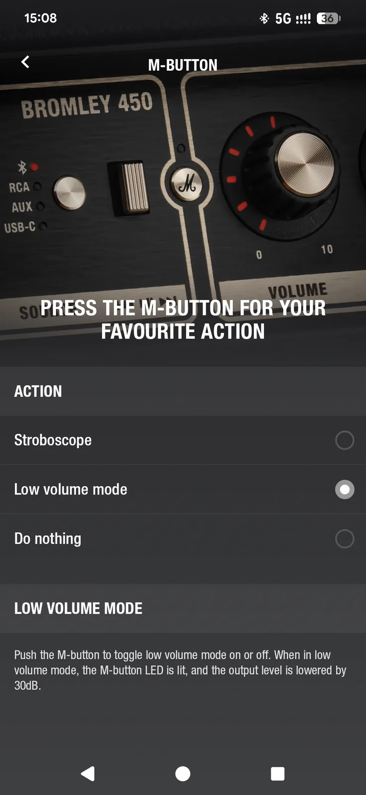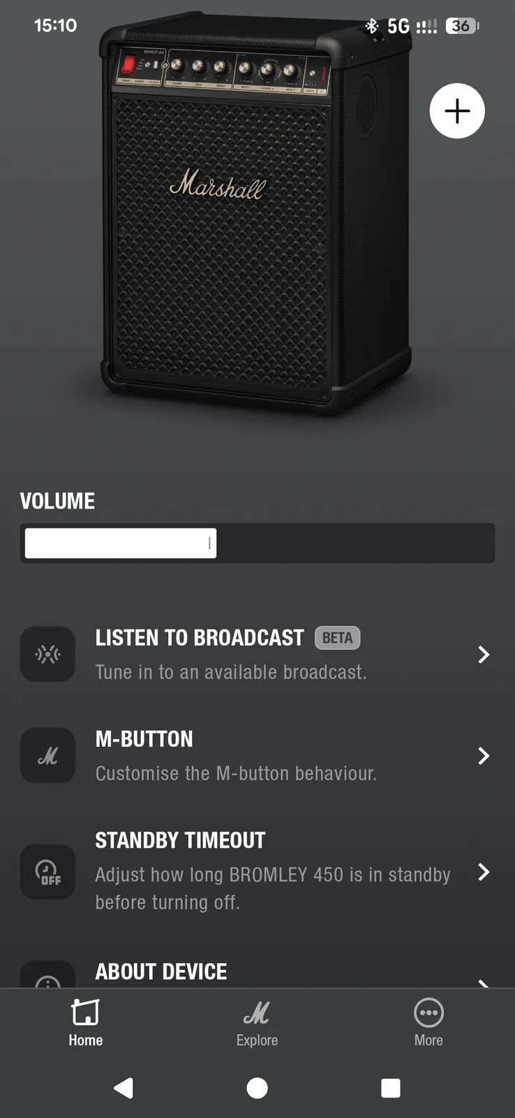 Il Bromley utilizza la stessa applicazione delle cuffie Marshall. L'app Marshall Bluetooth ha un aspetto pulito ed è facile da navigare, ma è carente di funzioni. Le servirà principalmente per Auracast (collegamento di più altoparlanti compatibili) e per configurare il pulsante M, che attualmente supporta solo una delle due funzioni assegnabili. Al di là del controllo del volume, non c'è molto che si possa regolare in remoto: niente equalizzazione, niente regolazioni degli alti o dei bassi.