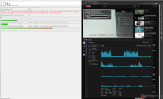 Aggiungendo FurMark al mix, la potenza di picco della CPU scende a 48,6 W e si mantiene a 22 W. La RTX 3050 mostra clock medi di 1.192 MHz con un consumo energetico costante di 34 W.