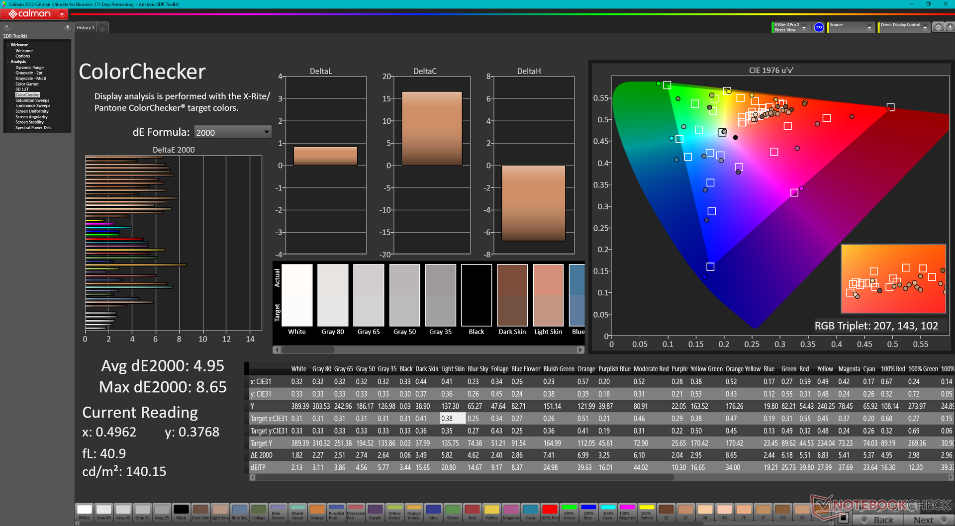 ΔE ColorChecker Calman: 4.95 | ∀{0.5-29.43 Ø4.78}