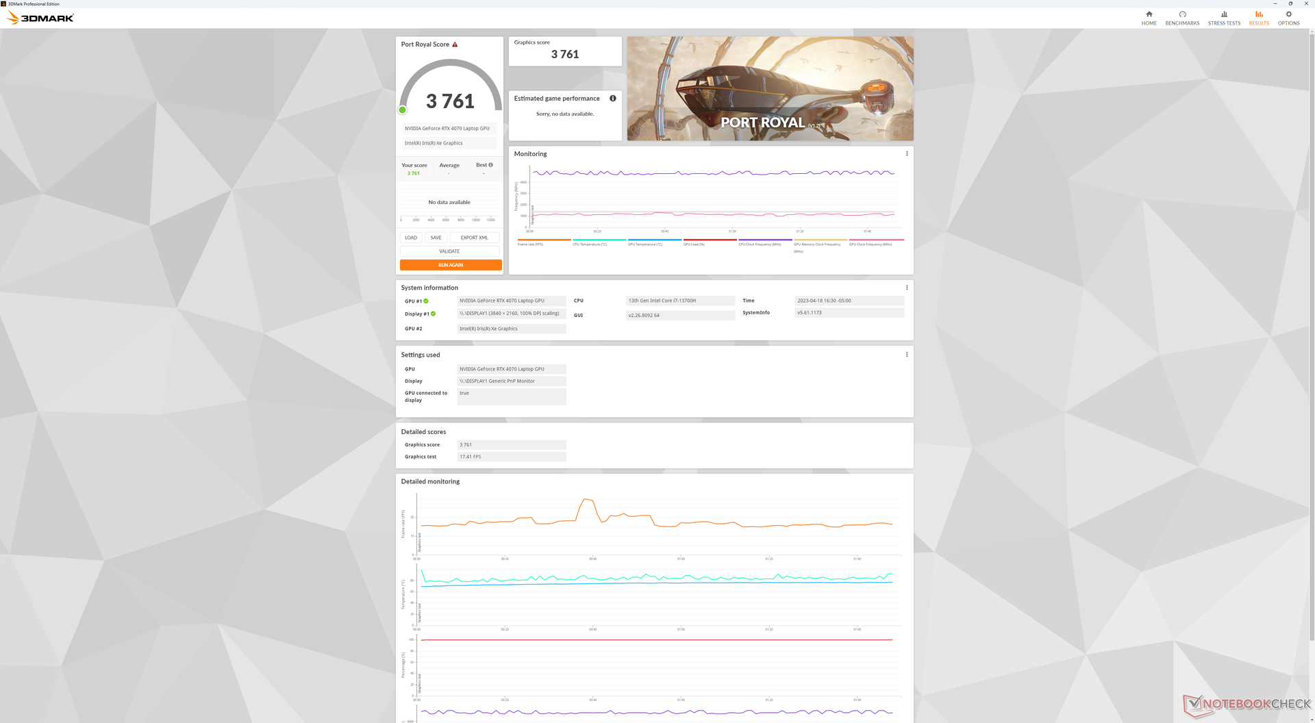 | 90.3 % v7 (old) | 04/2023 | Dell XPS 15 9530 RTX 4070 i7-13700H, GeForce RTX 4070 Laptop GPU | 1.9 kg | 18 mm | 15.60" | 3456x2160 | |