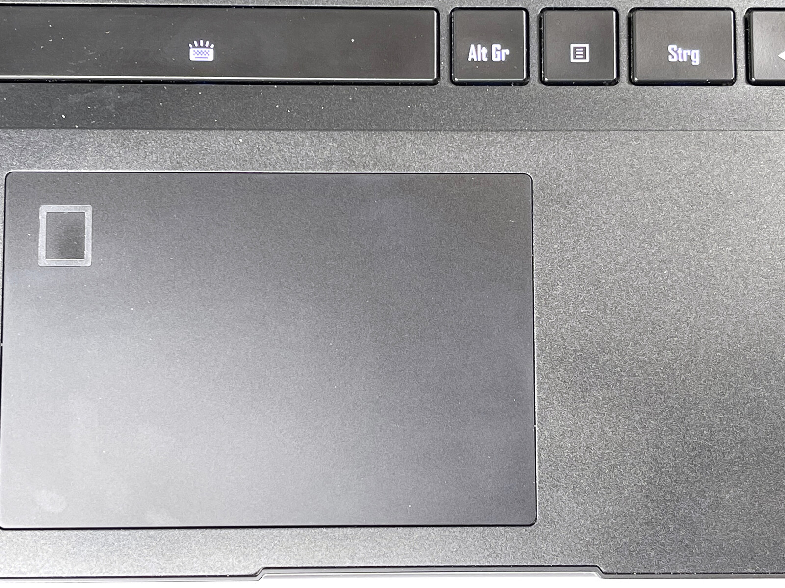 Con un'area di 10,5 x 7 cm, il touchpad è relativamente piccolo per gli standard odierni, soprattutto perché lo scanner di impronte digitali integrato limita ulteriormente l'area utilizzabile. Tuttavia, le proprietà di scorrimento del ClickPad di plastica sono al solito buon livello, e diversamente dai tasti della tastiera, i tasti del mouse integrato offrono un chiaro punto di pressione e un feedback soddisfacente.