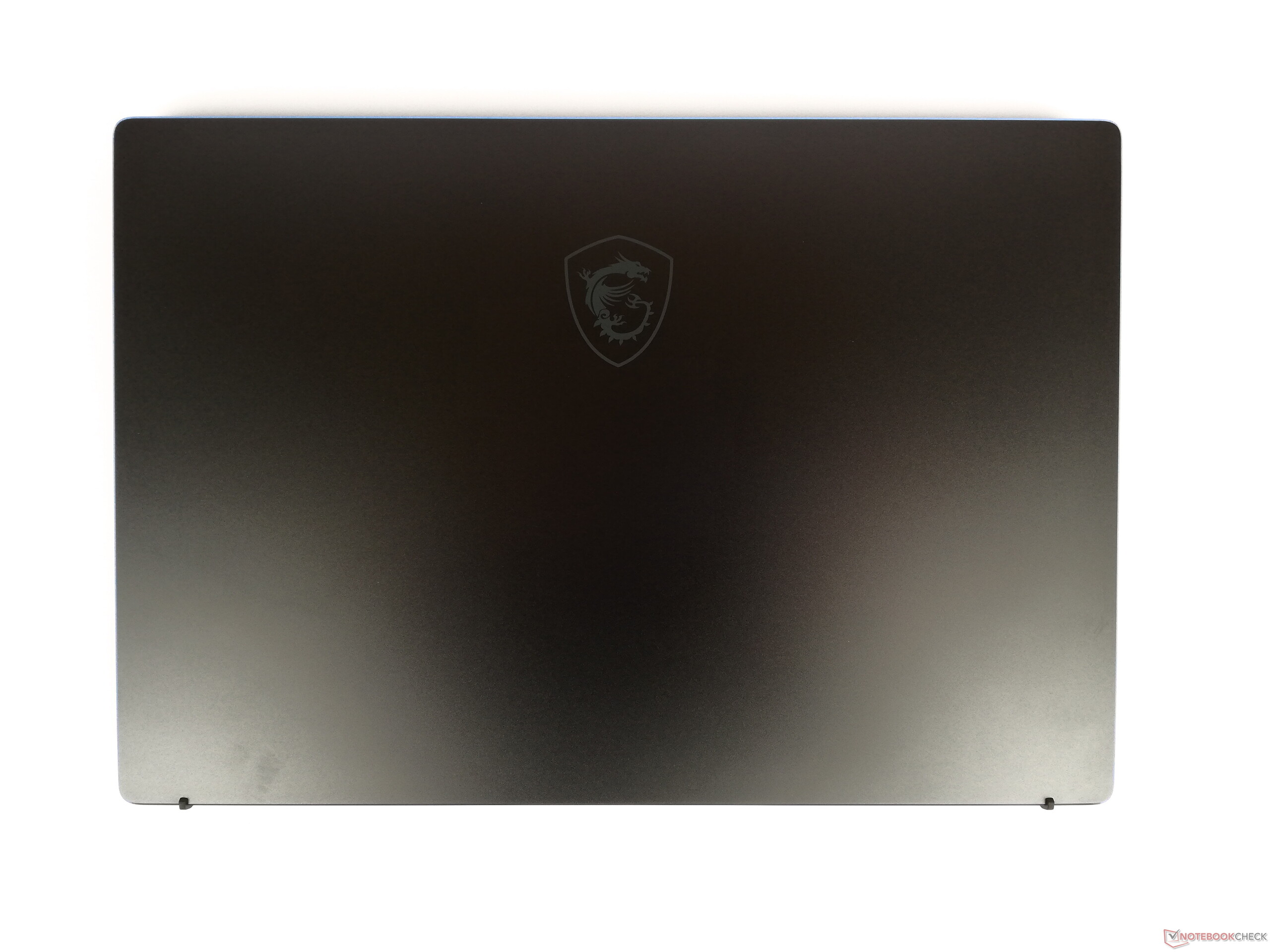 MSI ha realizzato il del Prestige 14 in metallo, e oltre alla variante di colore "Grigio Carbonio" qui raffigurata che ha i bordi blu lucido, è disponibile anche in "Pure White" e "Rose Pink". La lavorazione è di qualità molto elevata e non si possono rilevare difetti di dimensioni irregolari o altri difetti. Se la cover del Prestige 14 viene aperta, l'unità base si solleva leggermente sul retro. Questo crea un angolo che favorisce la circolazione dell'aria sulle superfici piane, ma il bordo risultante incide anche sulla pelle in modo leggermente sgradevole quando il piccolo portatile viene posizionato sulle ginocchia.