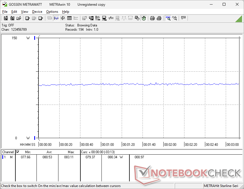 Siamo riusciti a registrare un consumo massimo di 99 W dall'adattatore CA di medie dimensioni (~13,9 x 6,3 x 3,5 cm) da 120 W quando la CPU è al 100 percento di utilizzo. Il sovraccarico può essere utile quando si collegano dispositivi o unità USB esterne.