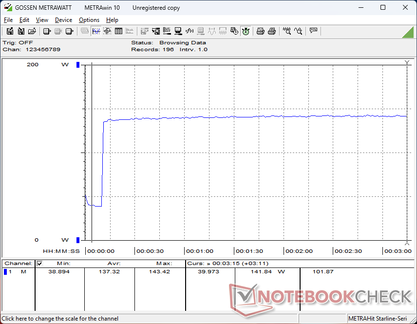 La CPU ha raggiunto i 3,2 GHz e i 69 W all'avvio dello stress Prime95. Dopo circa uno o due minuti, tuttavia, scendeva a 2,9 GHz e 61 W per mantenere una temperatura ragionevole del nucleo di 78 C. Il Turbo Boost massimo purtroppo non è indefinito, nonostante le grandi dimensioni dello chassis, ma almeno il calo delle prestazioni è relativamente minore.