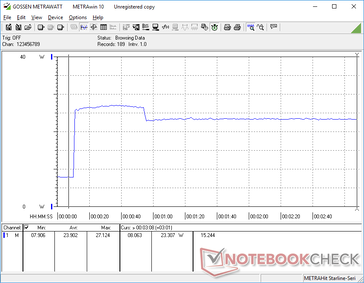 L'unità assorbe circa 7-8 W quando è al minimo sul desktop senza applicazioni in esecuzione, il che è più efficiente dell'Intel NUC11 con Core i5 di 11a generazione o del Core i5 di 10a generazione Zotac ZBox Nano. Quando si eseguono carichi più impegnativi, come i giochi, il sistema assorbe in media solo 18 W, rispetto ai 41 W o 33 W dei modelli Intel e Zotac citati in precedenza. Naturalmente, le prestazioni della GPU sono significativamente più lente sul Beelink Mini-S e quindi ci si aspetta una minore richiesta di energia.