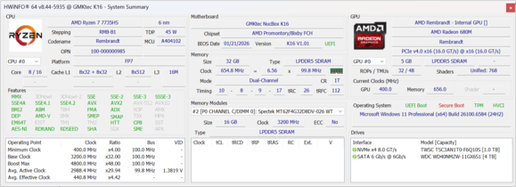 Lo stesso processore Zen 3+ è anche responsabile di molti svantaggi del sistema. La CPU obsoleta mostra i suoi limiti quando si analizza il consumo energetico, in quanto le prestazioni per watt non sono neanche lontanamente paragonabili a quelle di alcune delle più recenti alternative di Intel, tra cui il modello di GMK NucBox K13. Anche le prestazioni grafiche sono più lente della media, anche per una soluzione integrata.