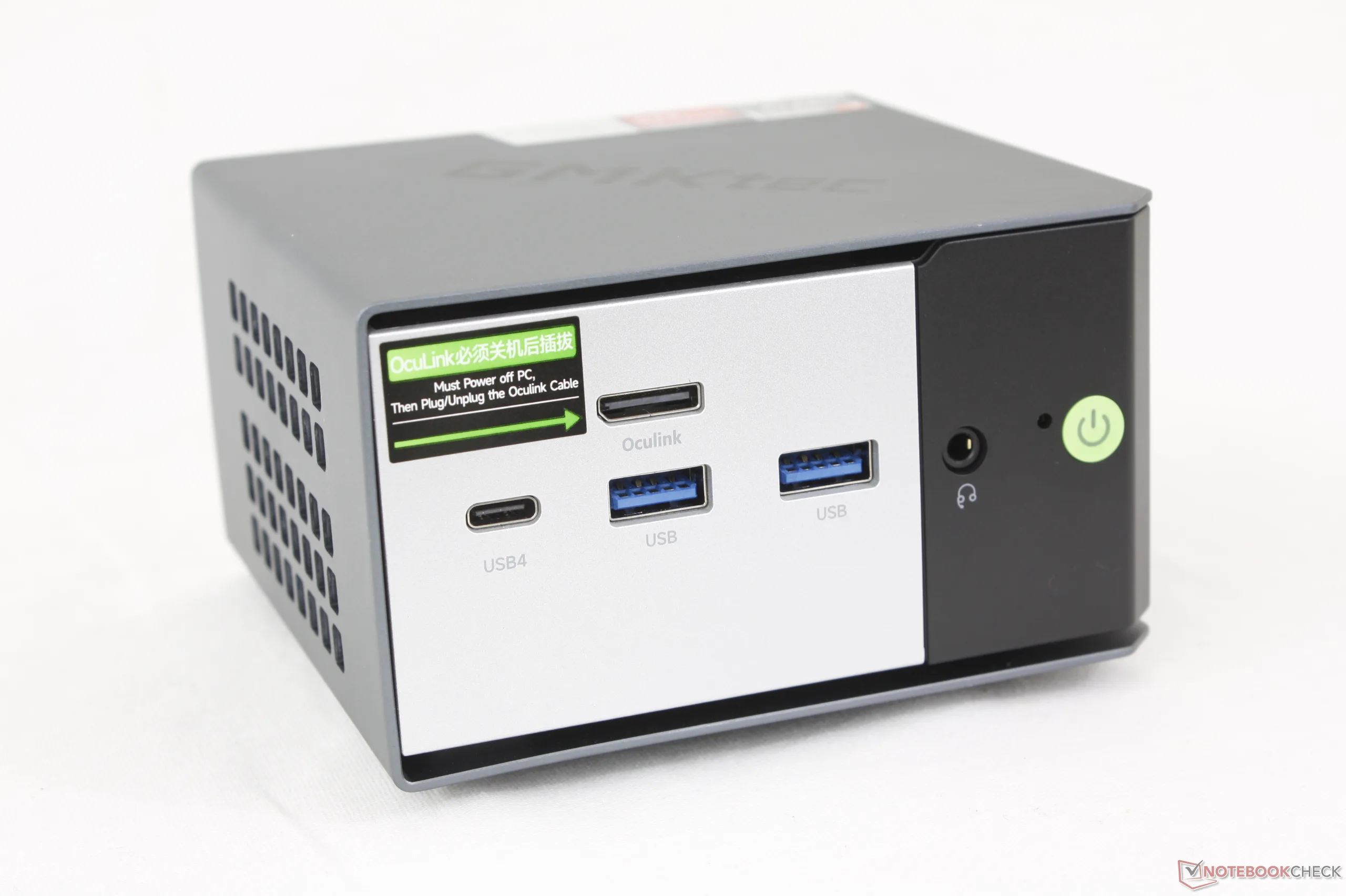 Lo chassis è identico a quello dell'EVO-X1 dello scorso anno, che continua ad essere uno dei mini PC più piccoli della gamma GMKtec. Le opzioni delle porte non sono cambiate, compresa l'importantissima porta Oculink che aiuta a distinguere il modello dalla maggior parte dei mini PC concorrenti.