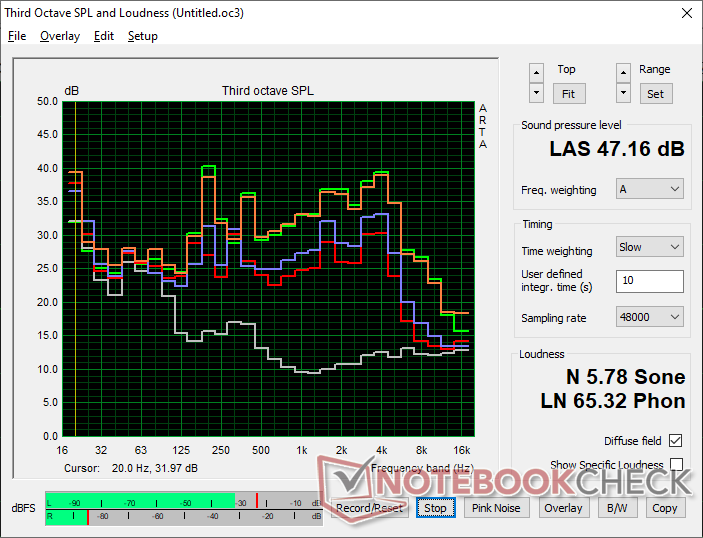 Le ventole, purtroppo, pulsano abbastanza frequentemente, fino a 38 dB(A) da un fondo silenzioso di 24 dB(A), anche quando si imposta la modalità Bilanciata o quando si eseguono carichi poco impegnativi come browser o video.