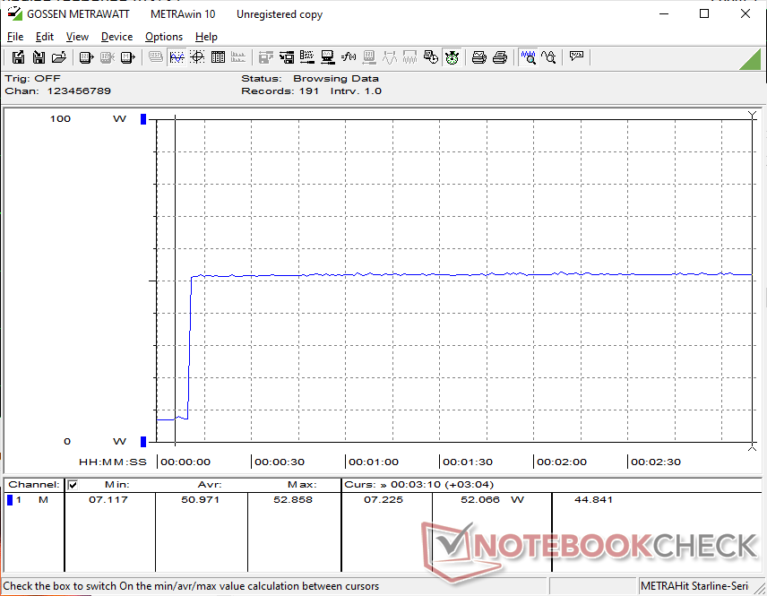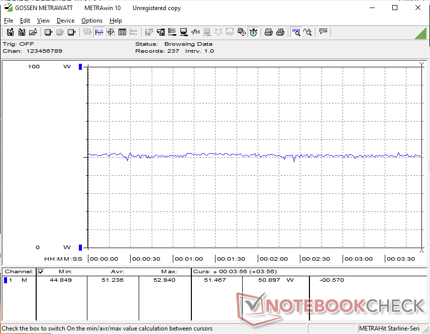 Il consumo complessivo è superiore a quello di MSI Cubi NUC AI+ 2MG, dotato del più recente e più efficiente Core Ultra 7 258V. Le prestazioni per watt sono relativamente deboli rispetto all'architettura Zen 3+.
