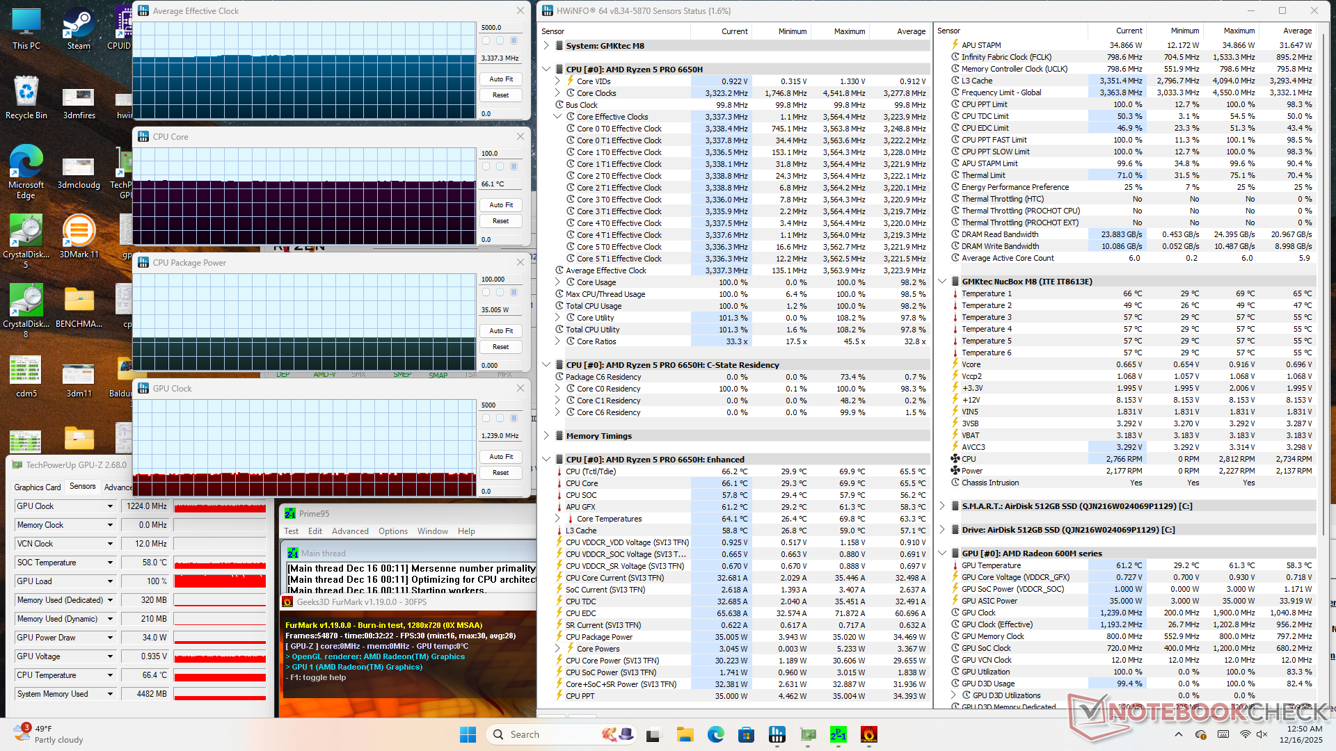 | Prime95 + FurMark Stress | 3,3 | 1239 | 66 |
