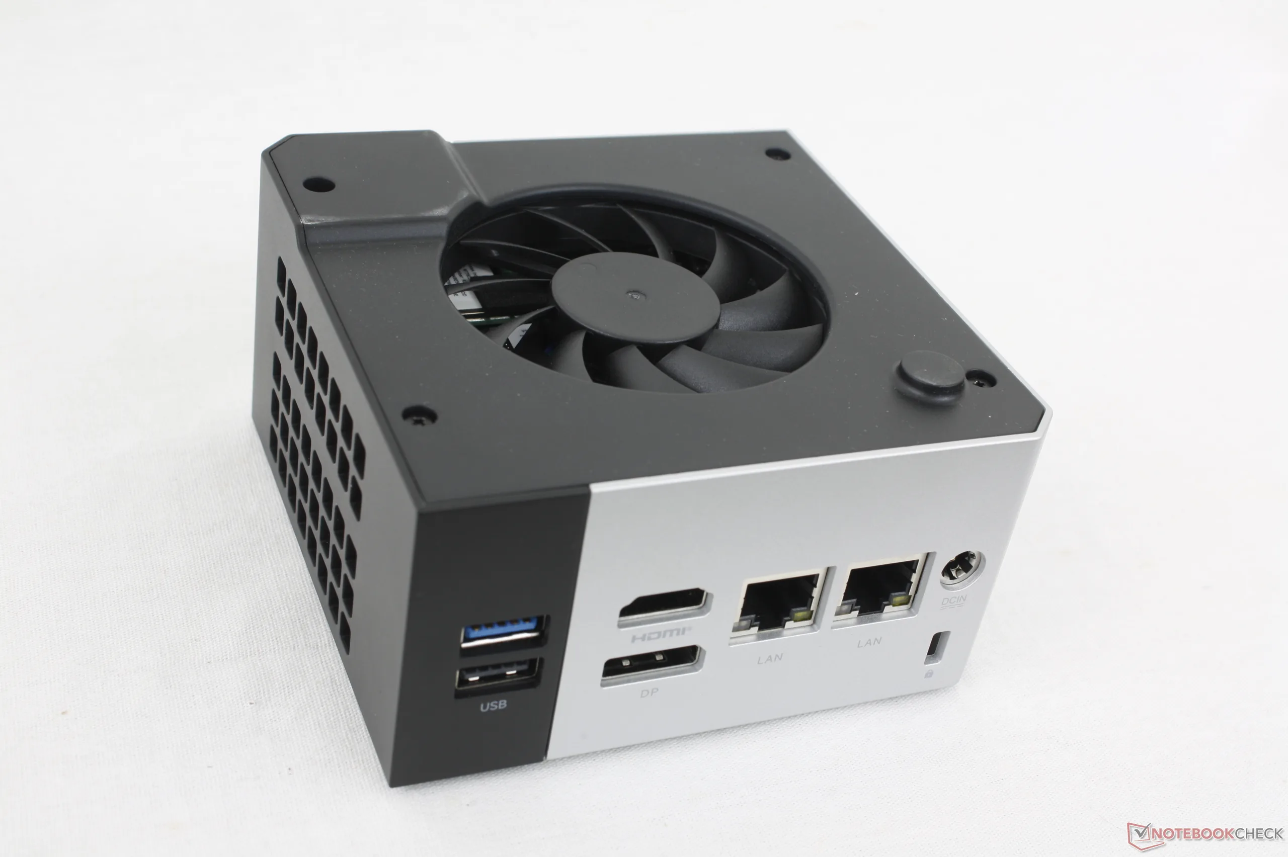 Si noti che l'adattatore CA da 100 W è piuttosto grande (~13,3 x 5,7 x 3,2 cm), nonostante le dimensioni ridotte del mini PC.