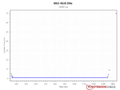 L'M65 mostra un certo ritardo di input a 800 DPI. Tuttavia, a 5,48 ms, è inferiore al valore normale di 8 ms per i mouse da tavolo convenzionali. Il ritardo sembra ridursi con l'aumento dei DPI. In pratica, i 5,48 ms non hanno influito in alcun modo sul gameplay.