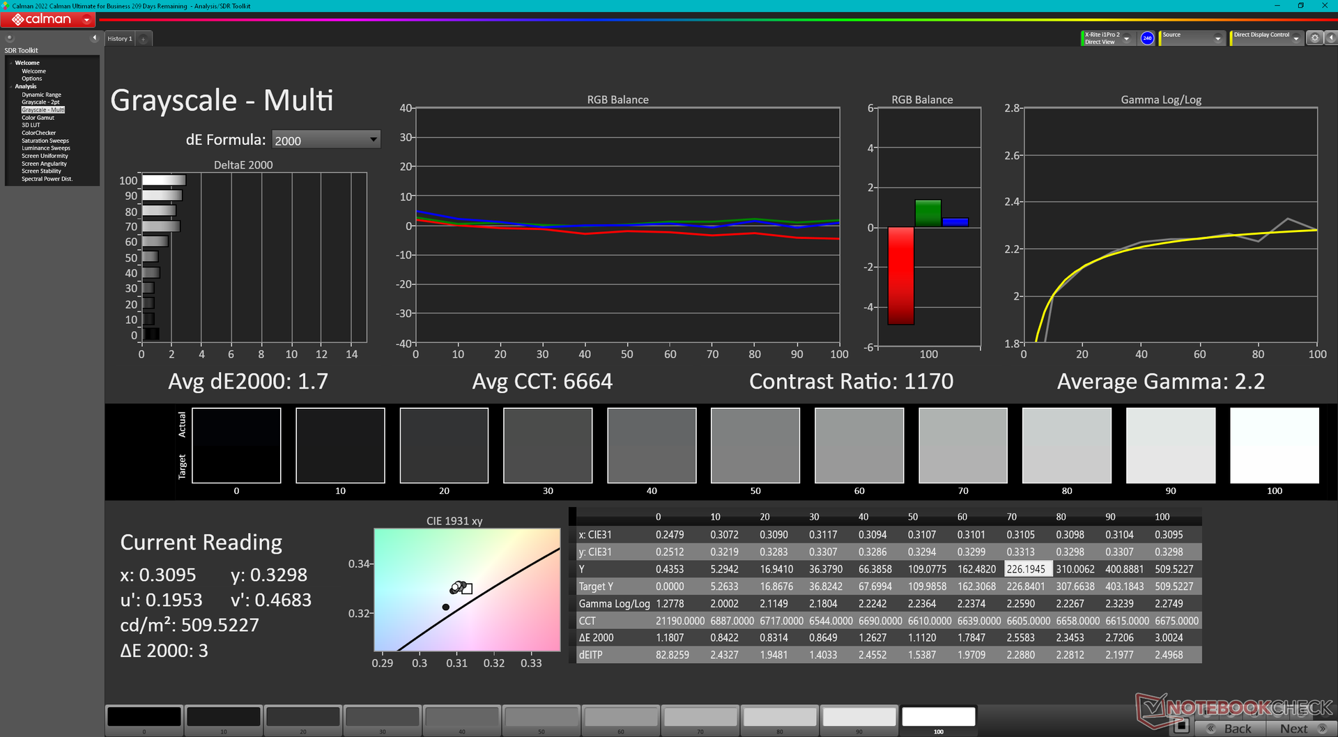 Sebbene lo standard P3 sia supportato, la precisione del colore avrebbe potuto essere migliore. La temperatura del colore è troppo fredda, il che influisce sui valori della scala di grigi e deltaE del colore. La calibrazione con il nostro colorimetro X-Rite risolve questo problema. Il nostro profilo ICM è disponibile gratuitamente per il download qui sopra.