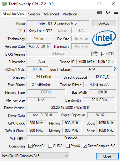 | GPU | Intel UHD Graphics 620 | Intel HD Graphics 615 | Nvidia GeForce MX150 | Intel UHD Graphics 620 | Intel UHD Graphics 620 | Intel HD Graphics 615 |