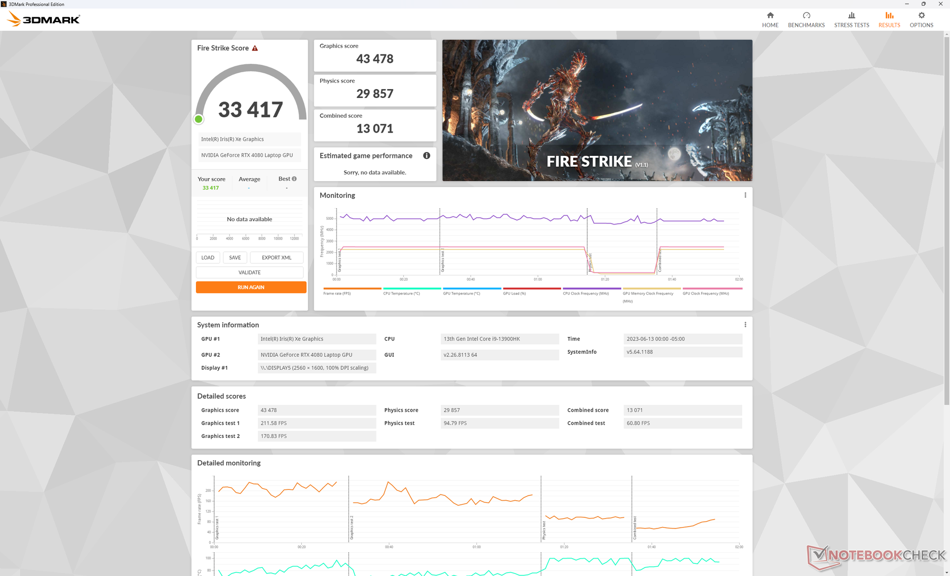 | 88.4 % v7 (old) | 06/2023 | Alienware x16 R1 i9-13900HK, GeForce RTX 4080 Laptop GPU | 2.6 kg | 18.57 mm | 16.00" | 2560x1600 | |
