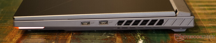 La maggior parte delle porte del ROG Strix G16 è concentrata sul lato sinistro del notebook. A destra sono presenti solo due porte USB. Le due prese USB Type-C sulla sinistra si dividono i compiti: quella posteriore supporta Thunderbolt 4 e quella anteriore Power Delivery, mentre entrambe supportano DisplayPort. L'alimentazione tramite USB-C è piuttosto limitata. Il portatile richiede una potenza di 20 volt e assorbe un massimo di 100 watt. Pertanto, non è possibile accedere a tutte le prestazioni del portatile tramite USB-C Power Delivery.