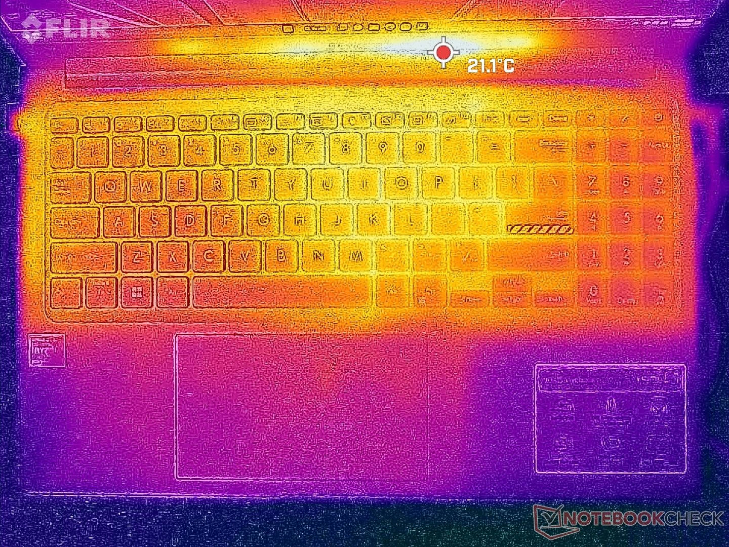 (+) I poggiapolsi e il touchpad sono piu' freddi della temperatura della pelle con un massimo di 20.8 °C / 69.4 F e sono quindi freddi al tatto.