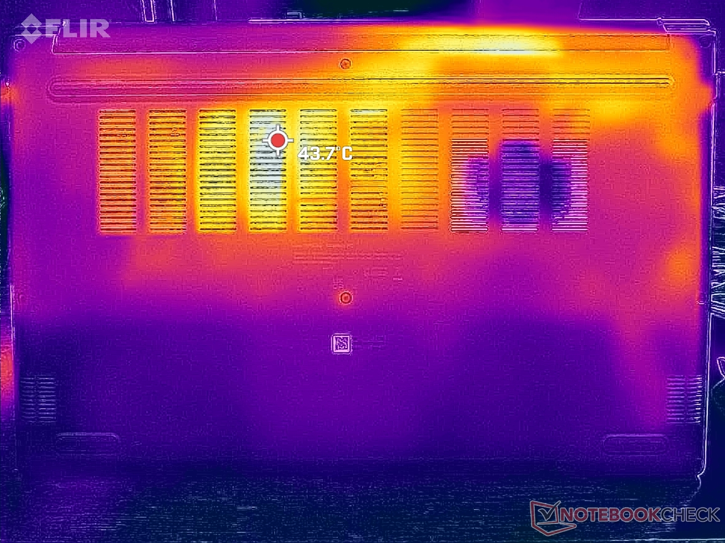 Le temperature di superficie sono sempre più calde nella metà destra dello chassis, a causa del posizionamento della soluzione di raffreddamento all'interno. La differenza tra il lato più freddo e quello più caldo della tastiera può raggiungere i 10 C. Le superfici non diventano mai fastidiosamente calde, indipendentemente dal carico sullo schermo.