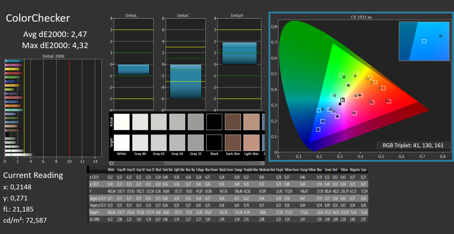 ΔE ColorChecker Calman: 2.47 | ∀{0.5-29.43 Ø4.78}