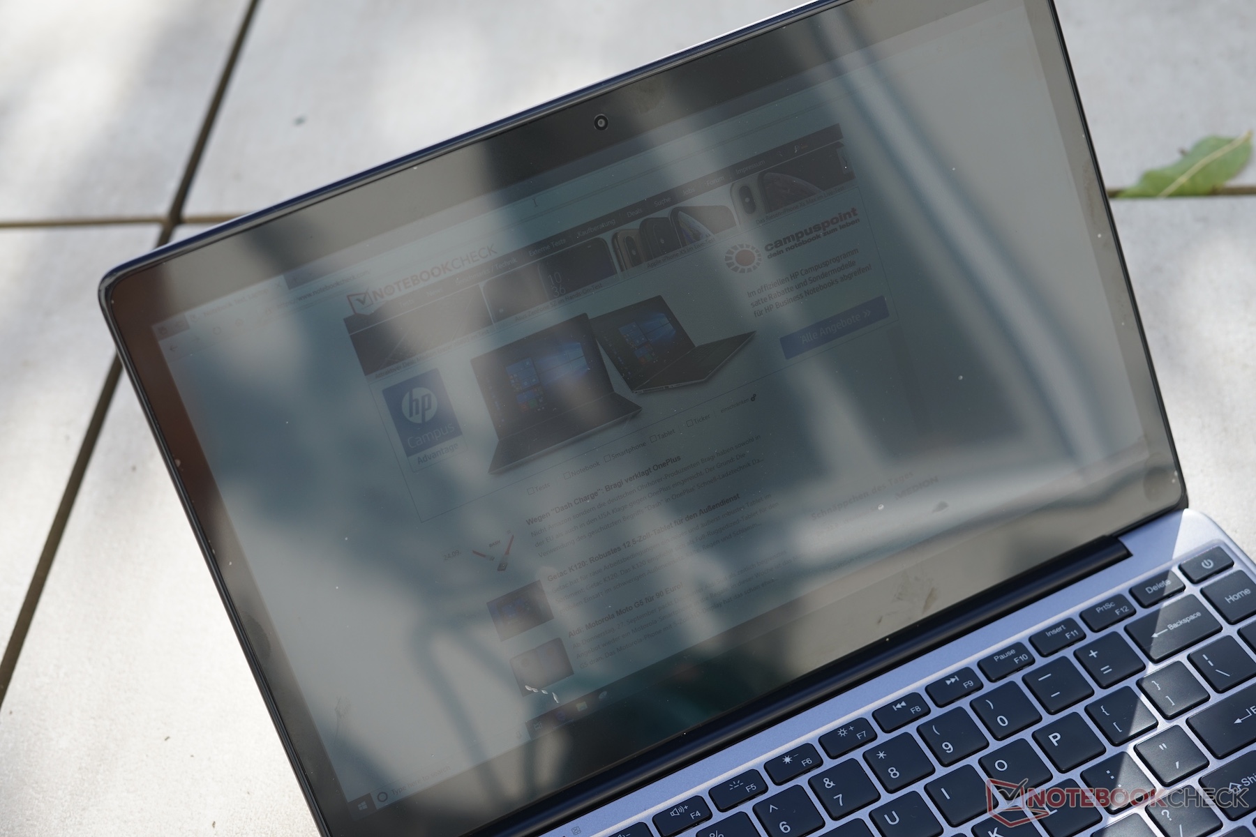 Il nostro dispositivo di prova ha una copertura dello spazio colore relativamente elevata, ma di default la precisione del colore è mediocre. Abbiamo migliorato notevolmente la precisione del colore del display con un'ulteriore calibrazione; abbiamo incluso il nostro file ICC se si desidera utilizzarlo. Il nostro dispositivo di prova ha un display uniformemente illuminato all'89%, al pari dei più costosi Microsoft Surface Go e Apple MacBook 12. Sfortunatamente, il nostro dispositivo di prova ha un notevole effetto bleeding su tutti i bordi del display, come dimostra la foto.
