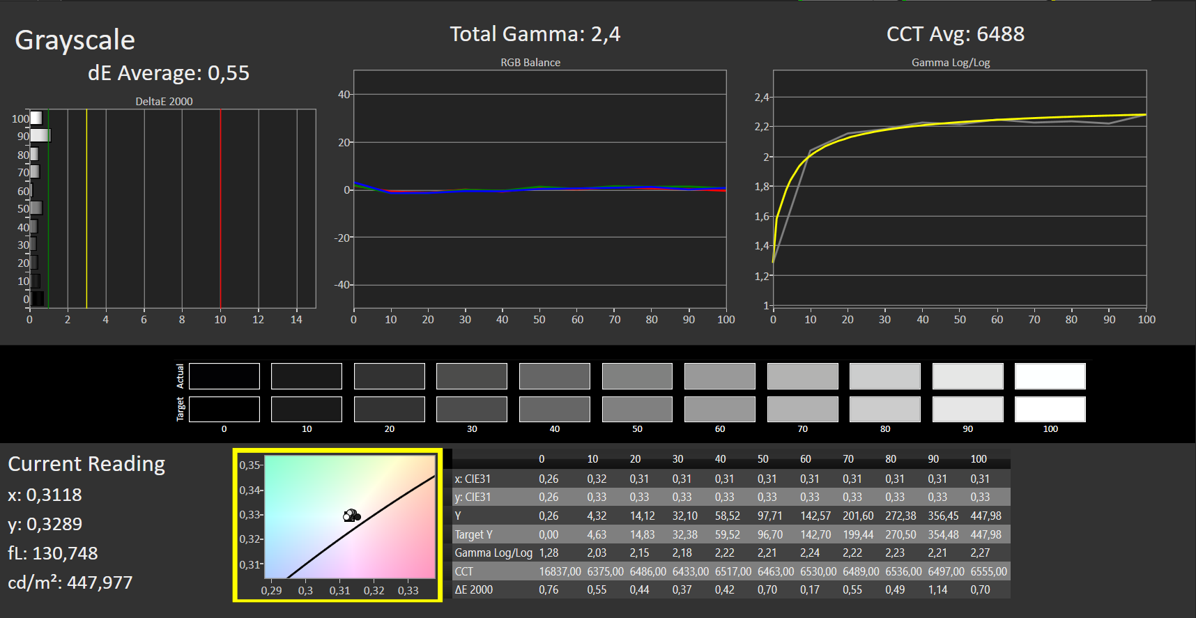 ΔE Greyscale Calman: 4.25 | ∀{0.09-98 Ø5}