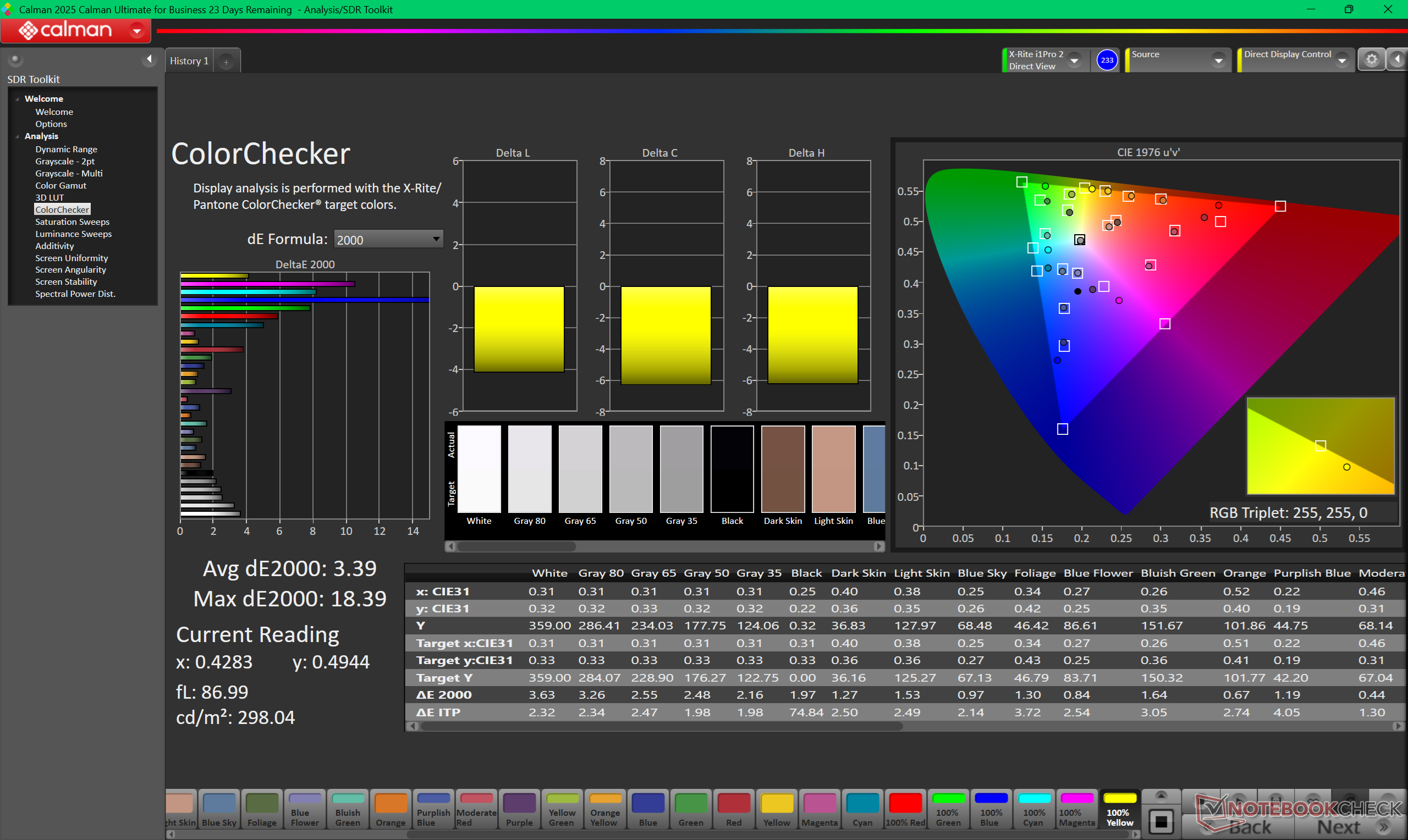 La temperatura del colore è leggermente troppo calda a ~6100K fuori dalla scatola. La calibrazione con un colorimetro X-Rite risolve questo problema e migliora i valori DeltaE medi, come mostrano gli screenshot di CalMan qui sotto. I proprietari possono scaricare e applicare il nostro profilo ICM calibrato gratuito qui sopra.