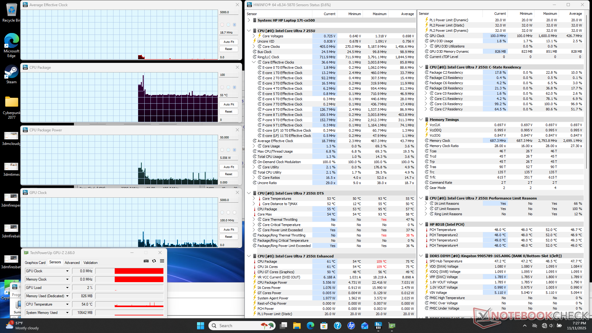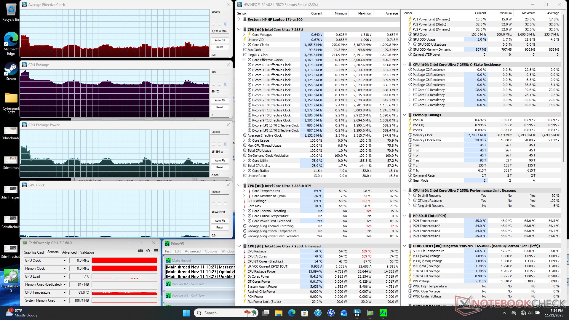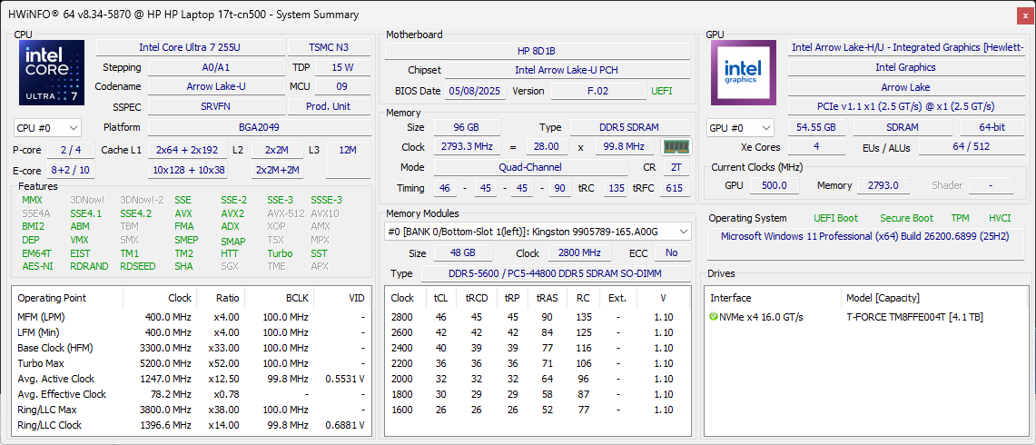 | HP 17t-cn500 Intel Core Ultra 7 255U ⎘ Intel Graphics 4-Core iGPU (Arrow Lake) ⎘ 96 GB Memoria, 4000 GB SSD | Amazon: $899.00 Prezzo di listino: 1150 USD | 2.1 kg | 19.8 mm | 17.30" 1920x1080 127 PPI IPS | |