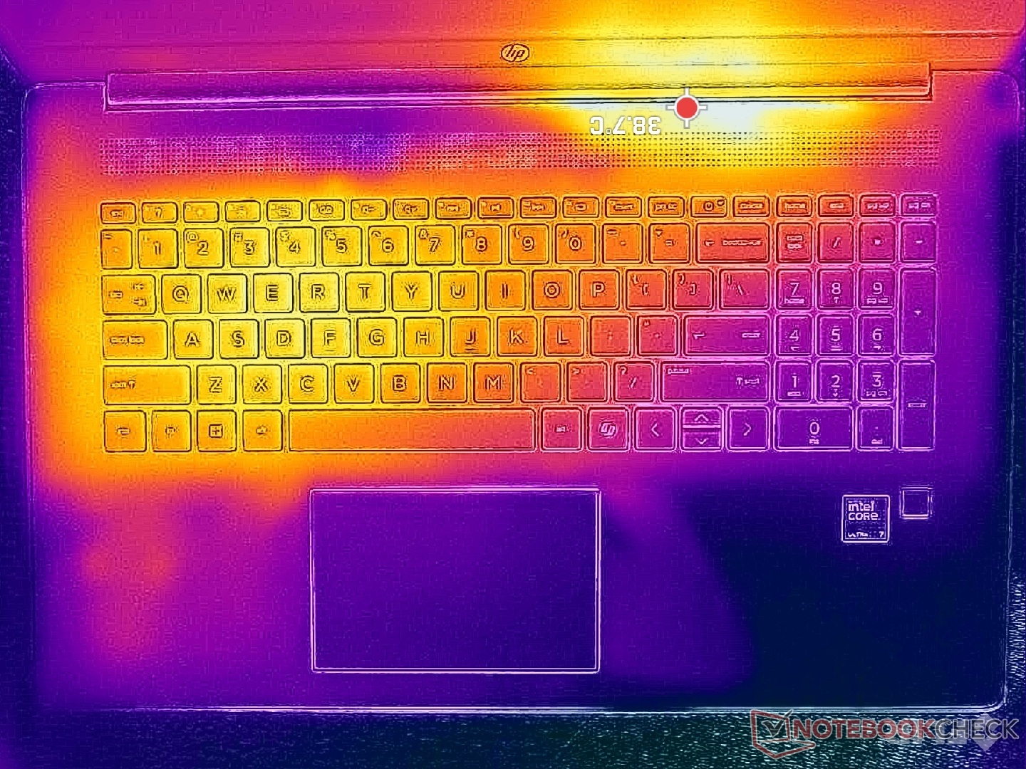 La metà sinistra del portatile diventa sensibilmente più calda rispetto alla destra, a causa del modo in cui è stata progettata la soluzione di raffreddamento. Il punto caldo dei tasti WASD può raggiungere i 40 C quando si eseguono carichi impegnativi per lunghi periodi, rispetto ai soli 30 C del tastierino numerico.