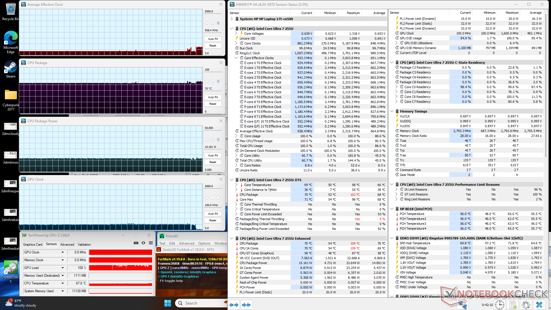 | Prime95 + FurMark Stress | 0,5 | 5700 | 70 | |