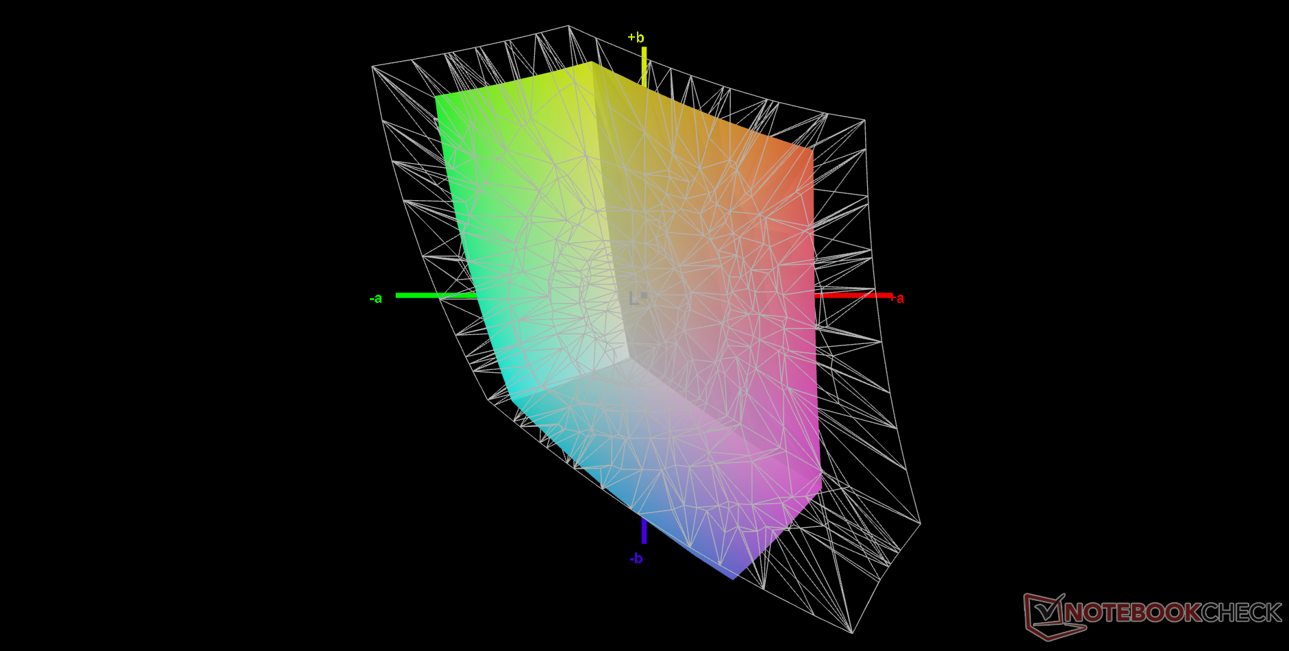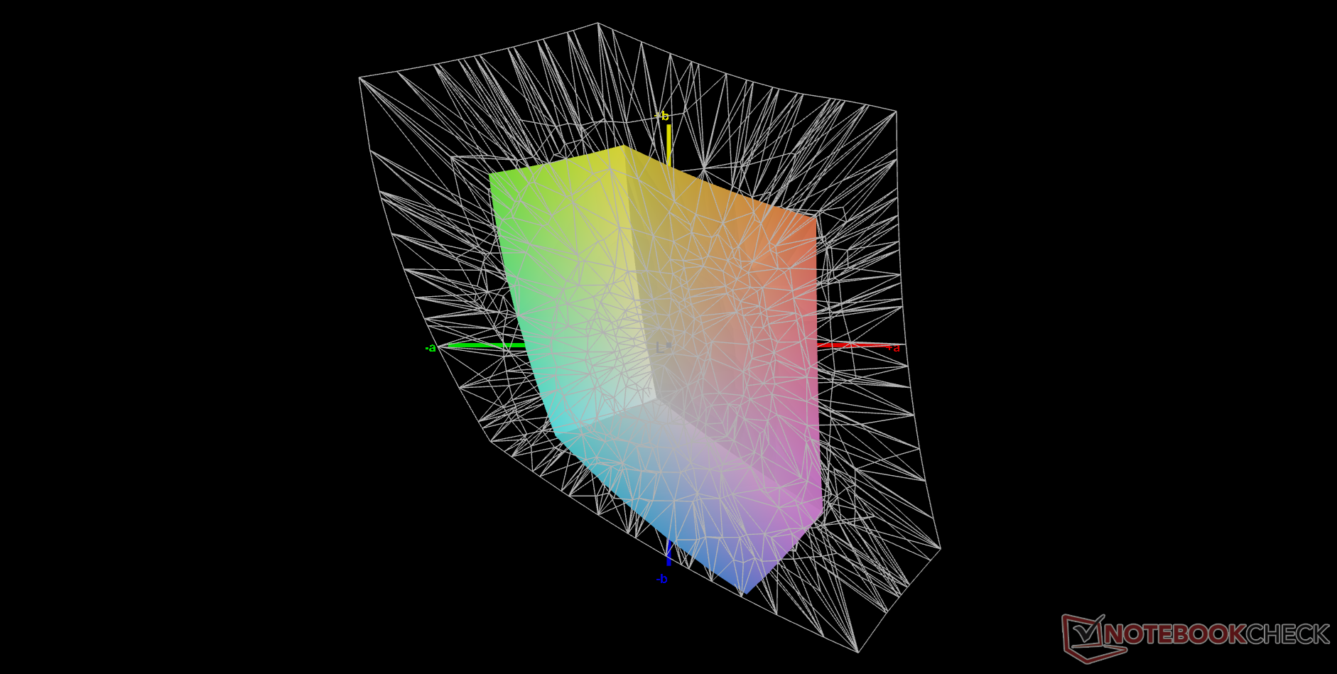 Il pannello Chi Mei IPS è il più semplice possibile, con una copertura sRGB limitata e tempi di risposta sia della luminosità che del bianco e nero nella media. Il suo rapporto di contrasto è sorprendentemente buono per un computer portatile economico, con circa 1500:1, ma il moderato backlight bleeding e lo spazio cromatico ristretto sono altrimenti sufficienti per i casi d'uso multimediali di base.