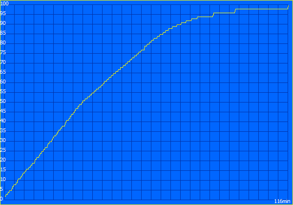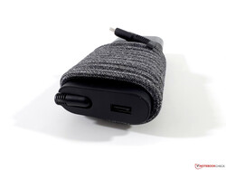 L'alimentatore USB C ha una potenza nominale di 110 watt, con un massimo di 100 watt erogati al portatile. Gli altri 10 watt sono disponibili tramite la porta USB A aggiuntiva che può essere utilizzata, ad esempio, per ricaricare uno smartphone. L'alimentatore non ha problemi di consumo massimo e dispone di riserve sufficienti per caricare la batteria sotto carico.