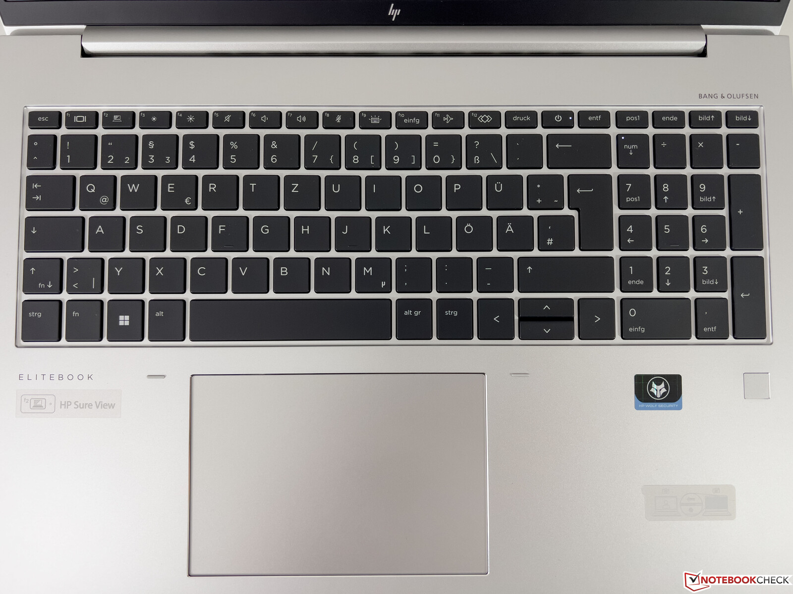 La tastiera retroilluminata con tastierino numerico dedicato ci ha fatto un'ottima impressione. La pressione dei tasti è molto decisa, quindi le opinioni possono variare a seconda delle preferenze personali, ma nel complesso si tratta di una delle migliori tastiere disponibili per i dispositivi mobili. È migliore della più costosaZBook Studio 16 G9e può persino essere paragonata ai ThinkPad di Lenovo, sebbene la loro qualità sia scesa negli ultimi anni. Nel complesso preferiamo il dispositivo di input a prova di schizzi dell'EliteBook a quello dell'attuale ThinkPad T16.ThinkPad T16solo il pulsante di accensione integrato e i piccoli tasti freccia verticali richiedono un po' di tempo per abituarsi